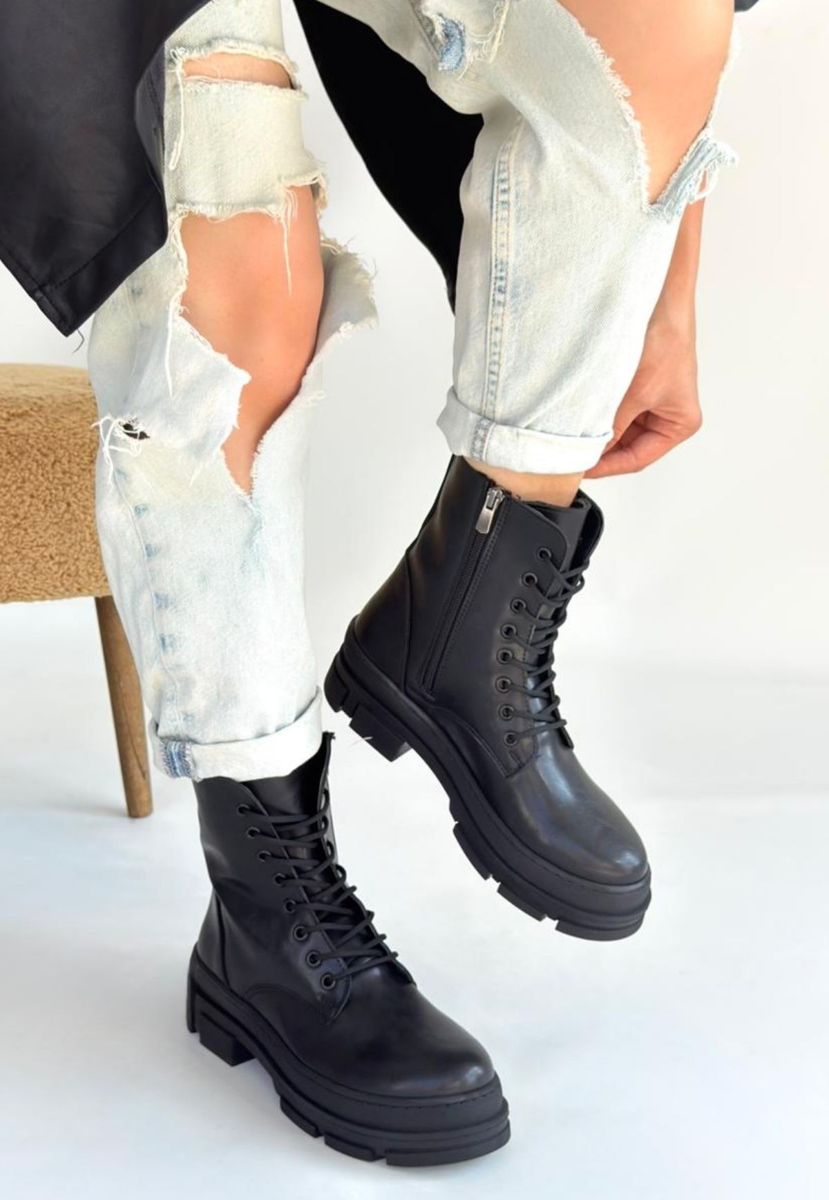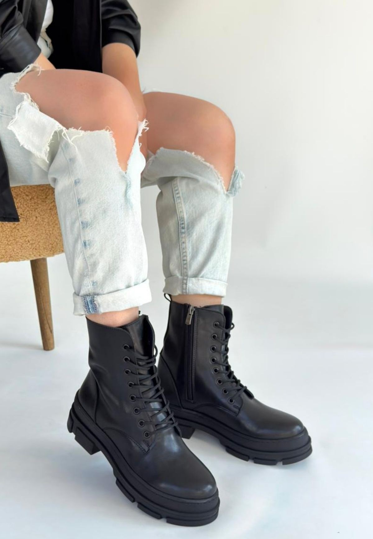 Allex Siyah Cilt Bağcıklı Bot