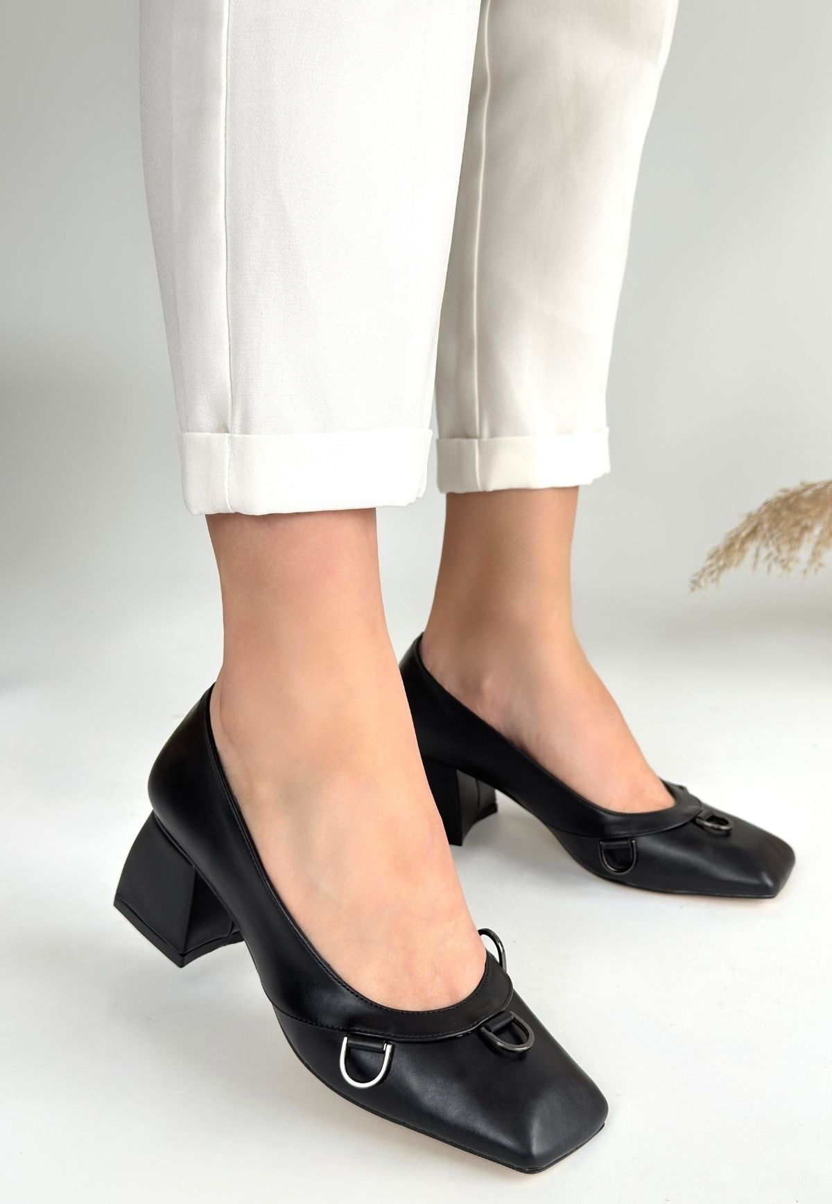 Cande Siyah Cilt Topuklu Ayakkabı
