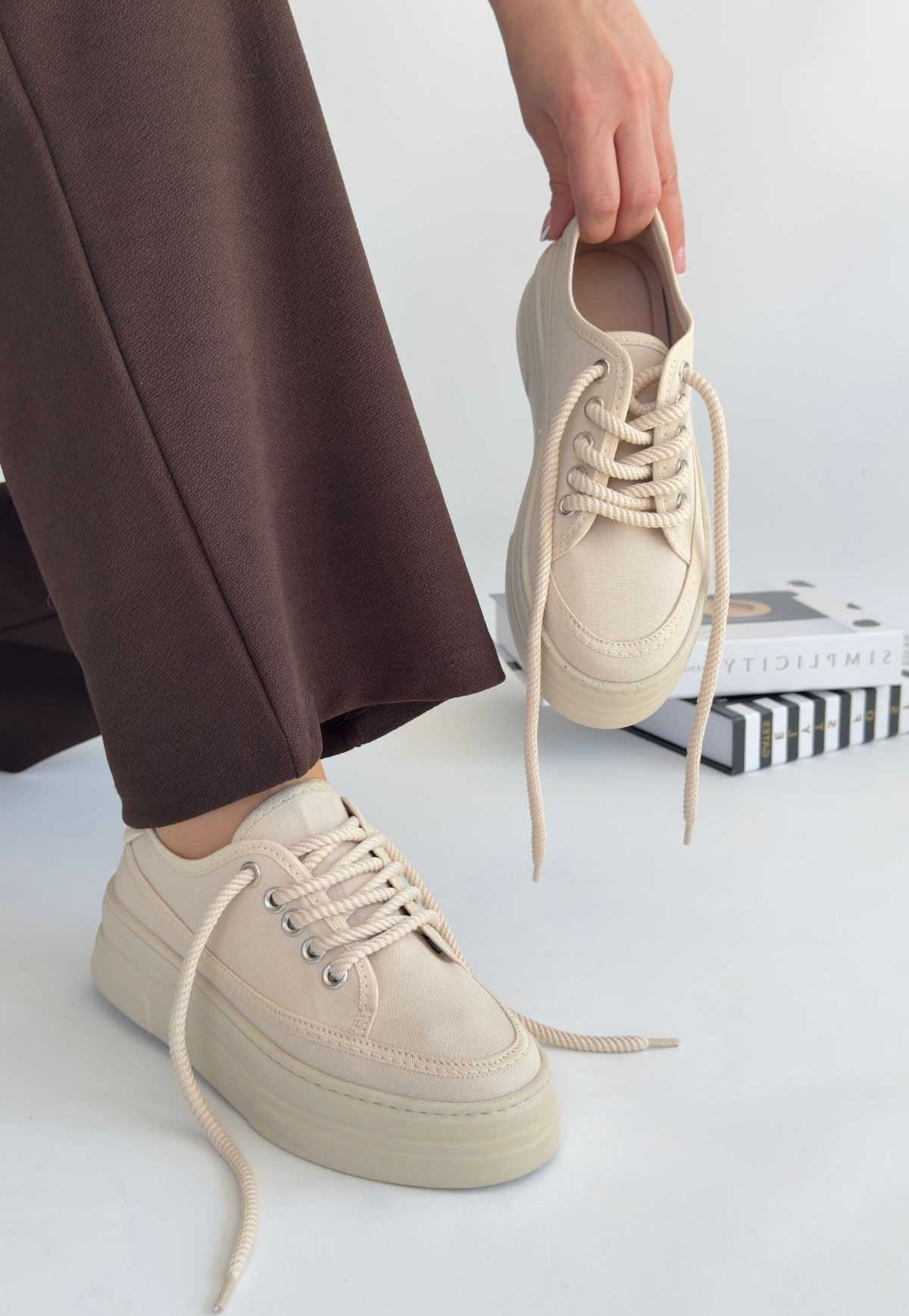 Carin Bej Keten Bağcıklı Spor Ayakkabı