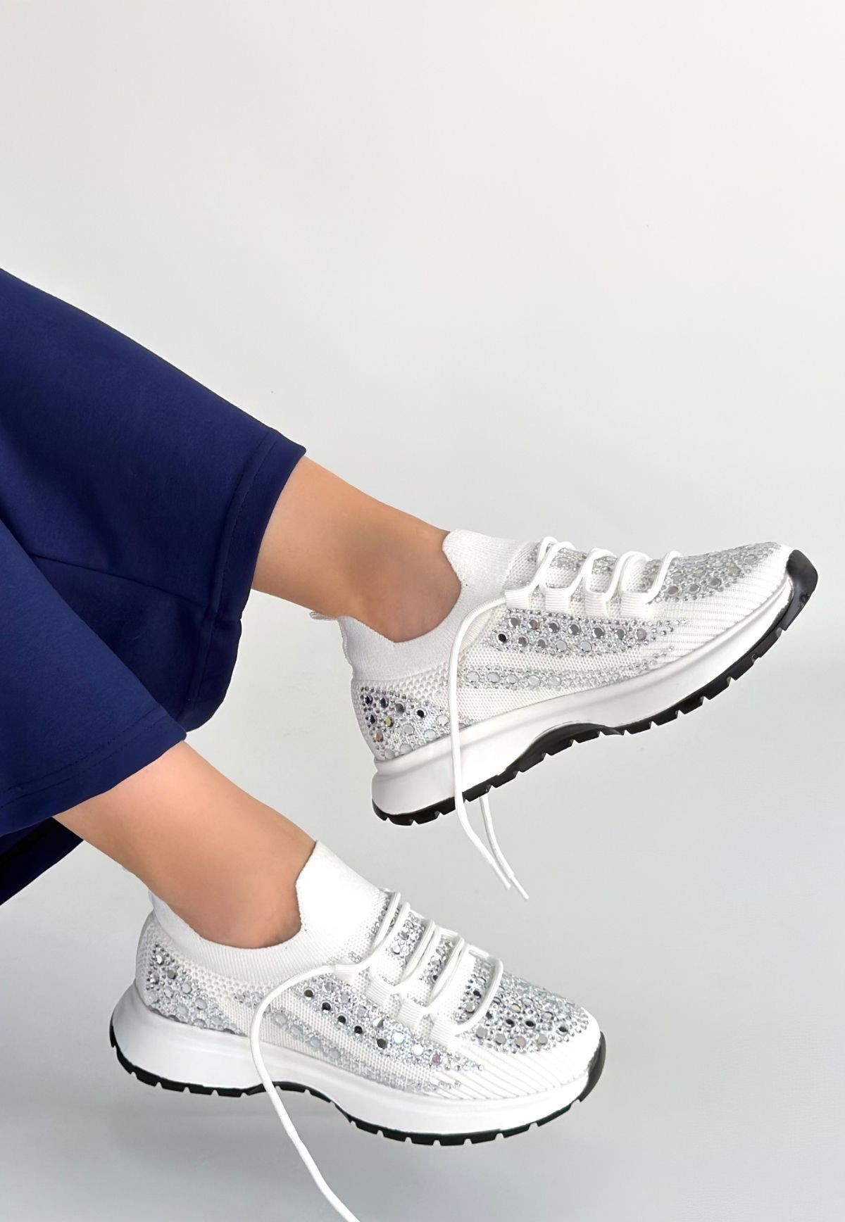 Ceas Beyaz Triko Bağcıklı Spor Ayakkabı