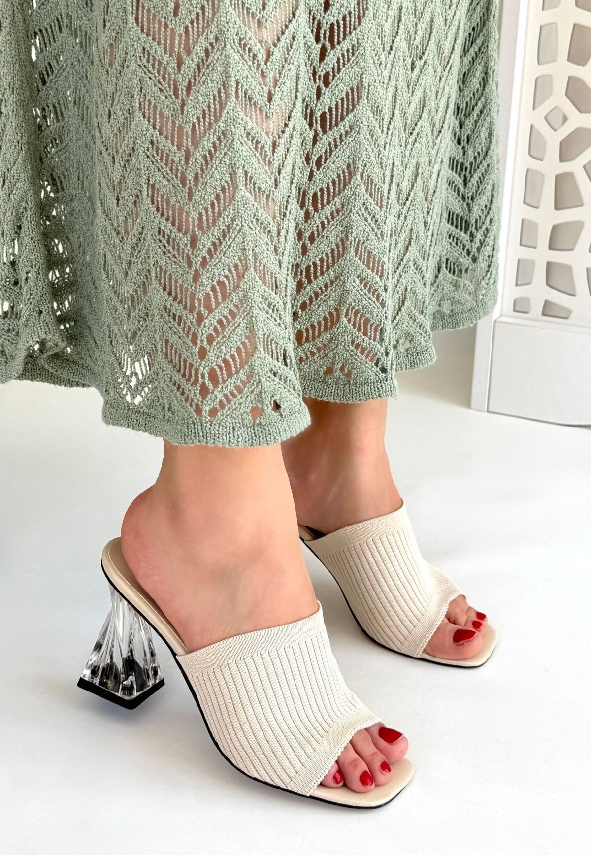 Evra Ten Triko Topuklu Terlik