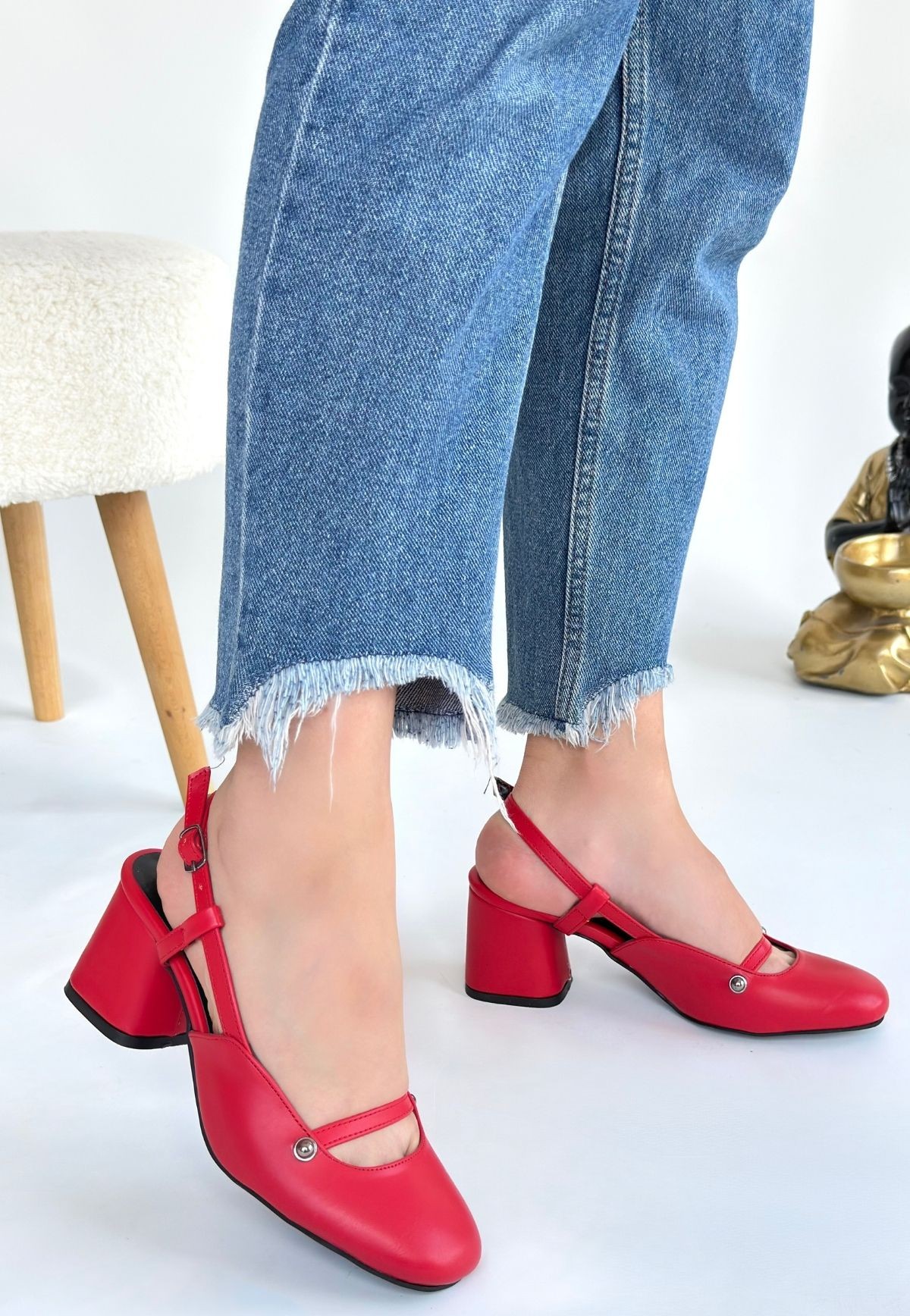 Jecci Kırmızı Cilt Topuklu Ayakkabı