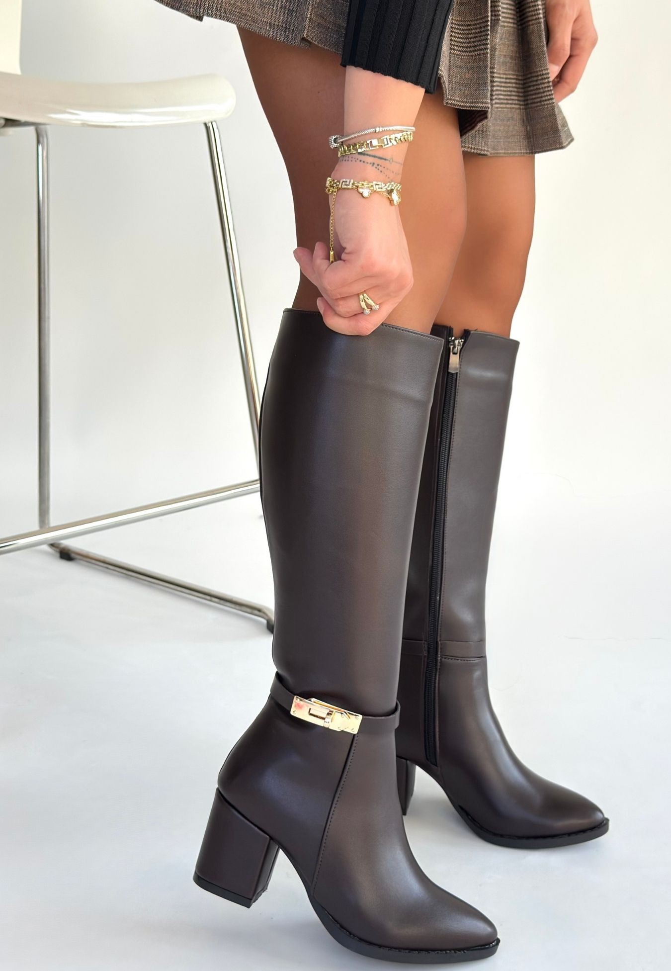 Jeoli Kahverengi Cilt Topuklu Çizme
