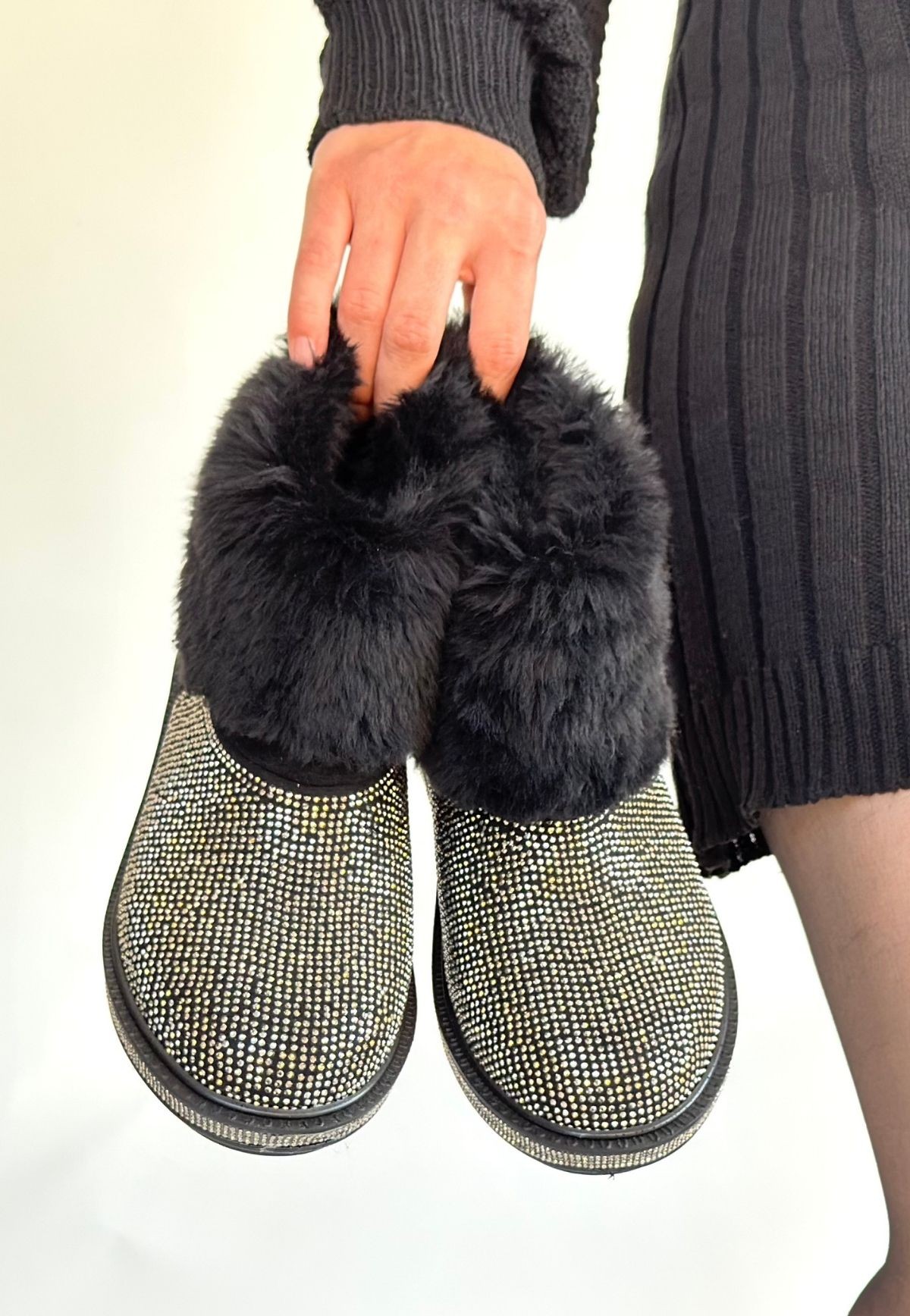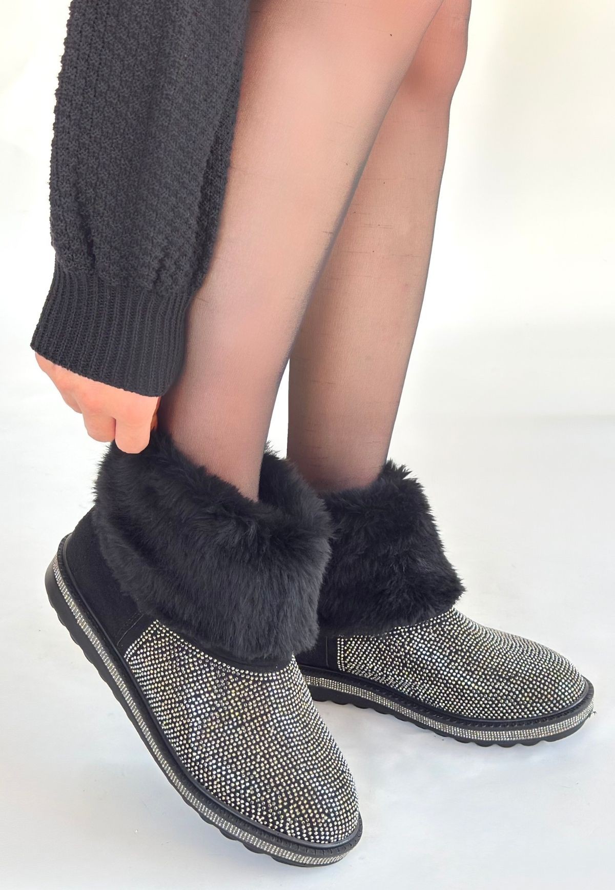 Linka Siyah Süet Gümüş Boncuk İşlemeli Bot
