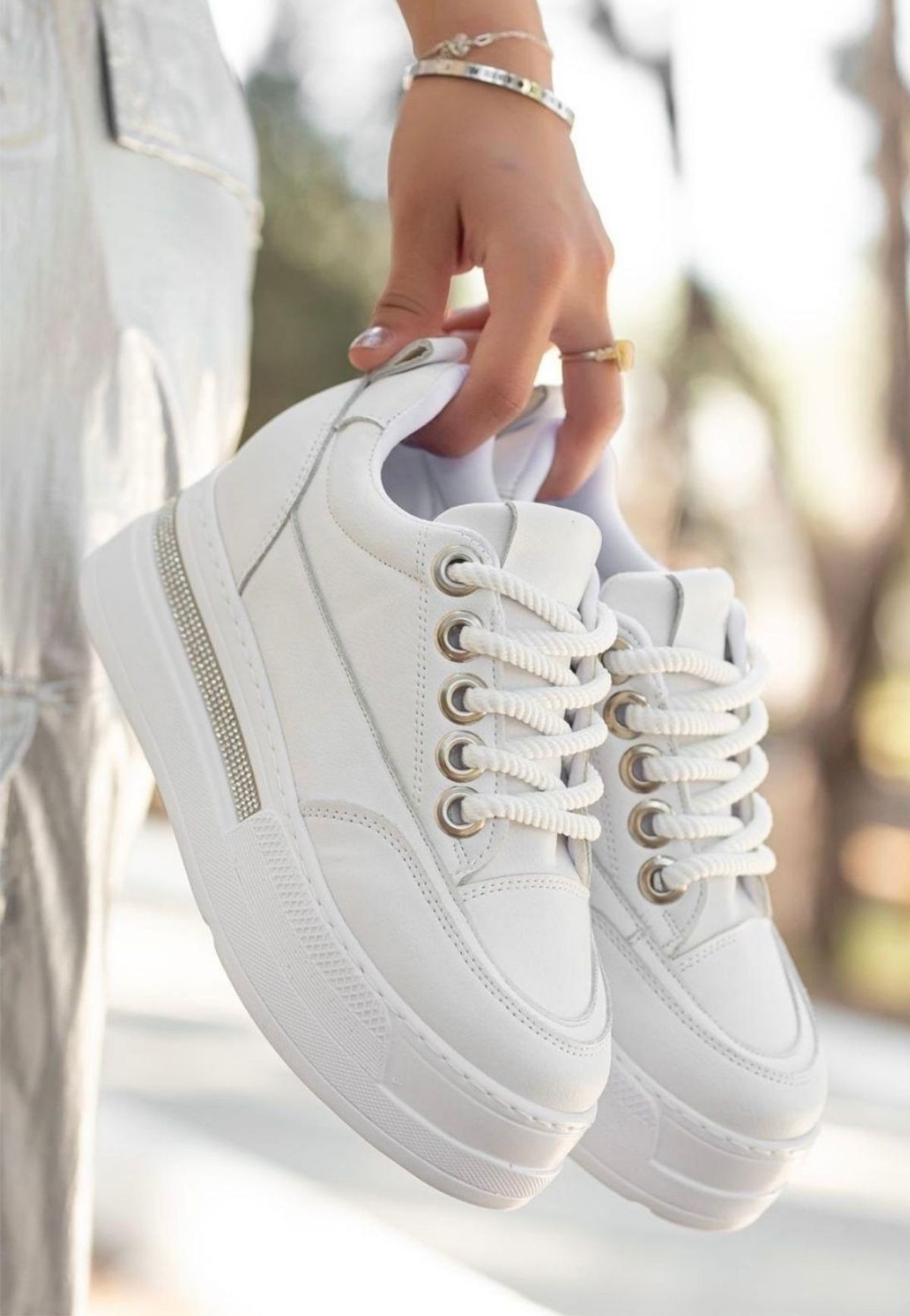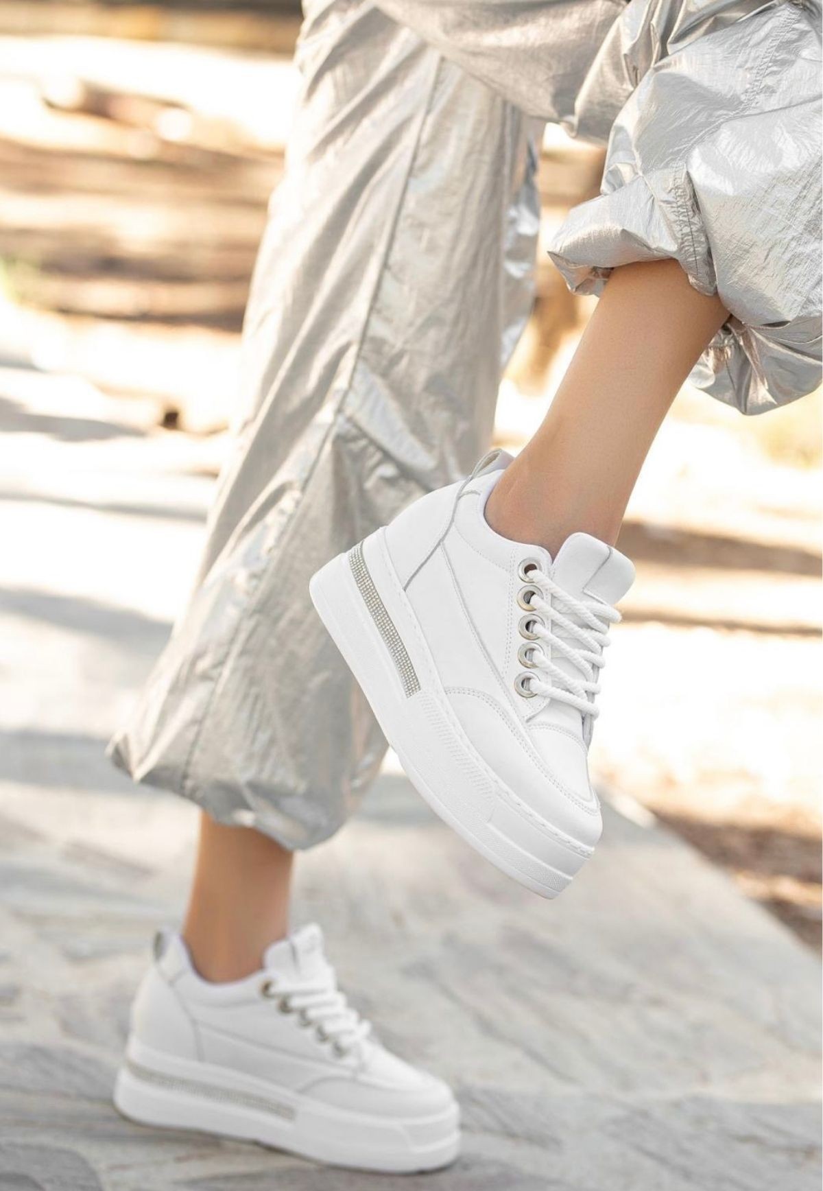 Lulu Beyaz Cilt Bağcıklı Spor Ayakkabı