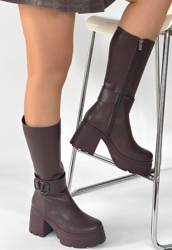 Detay: Düz Yandan Fermuarlı Diz Altı Çizme.