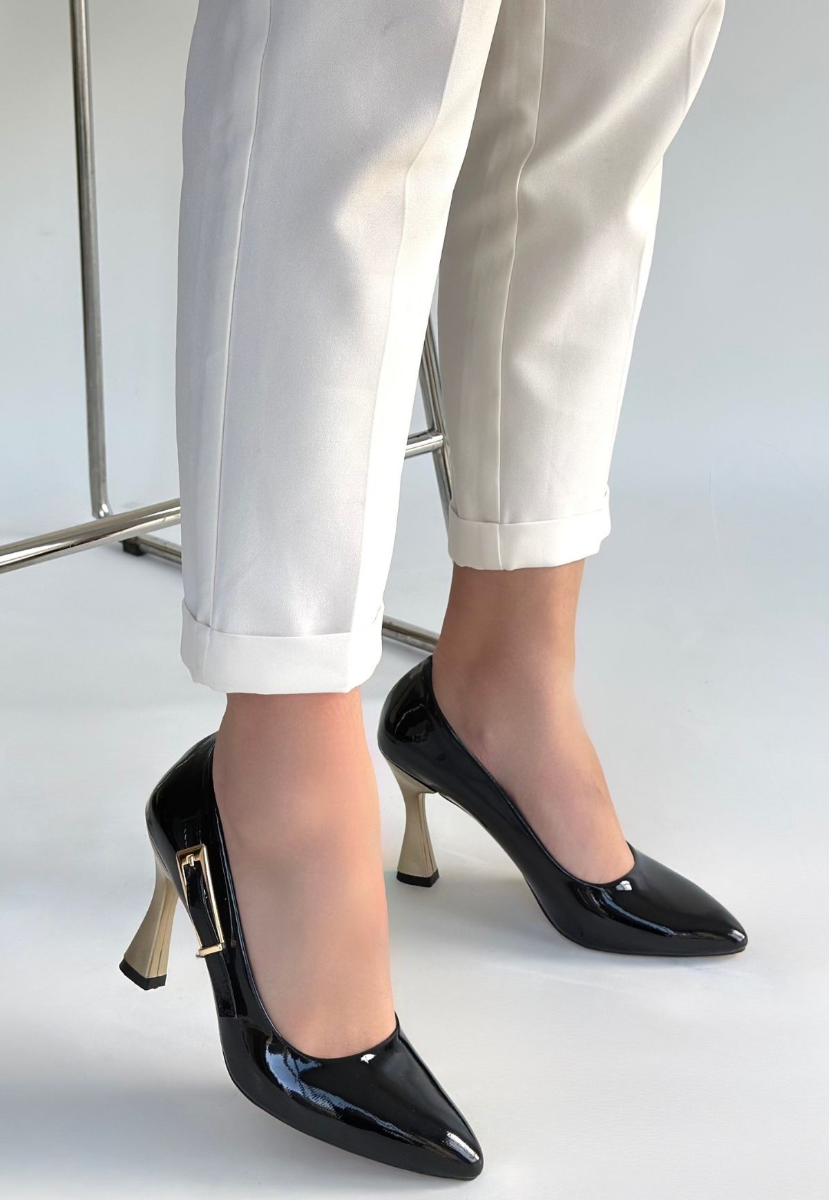 Motya Siyah Rugan Topuklu Ayakkabı