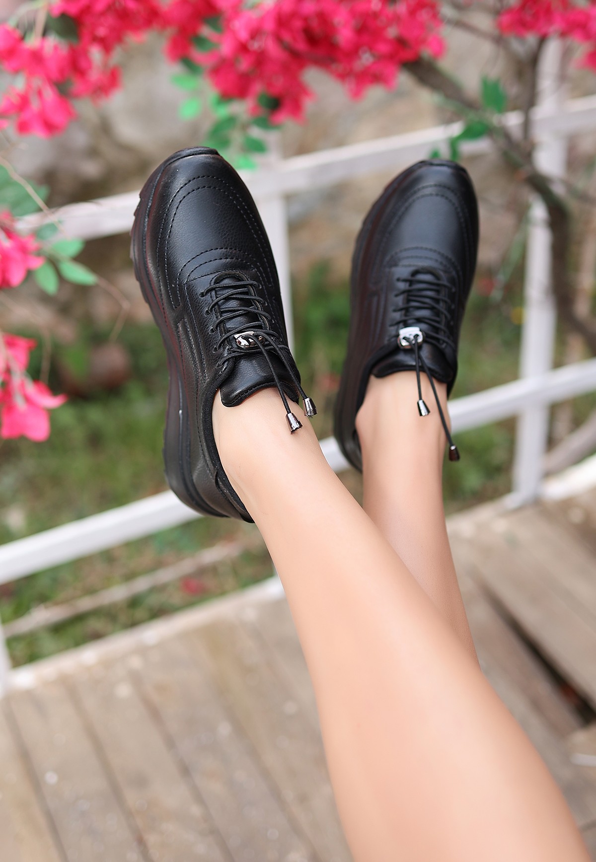 Romy Siyah Cilt Bağcıklı Spor Ayakkabı