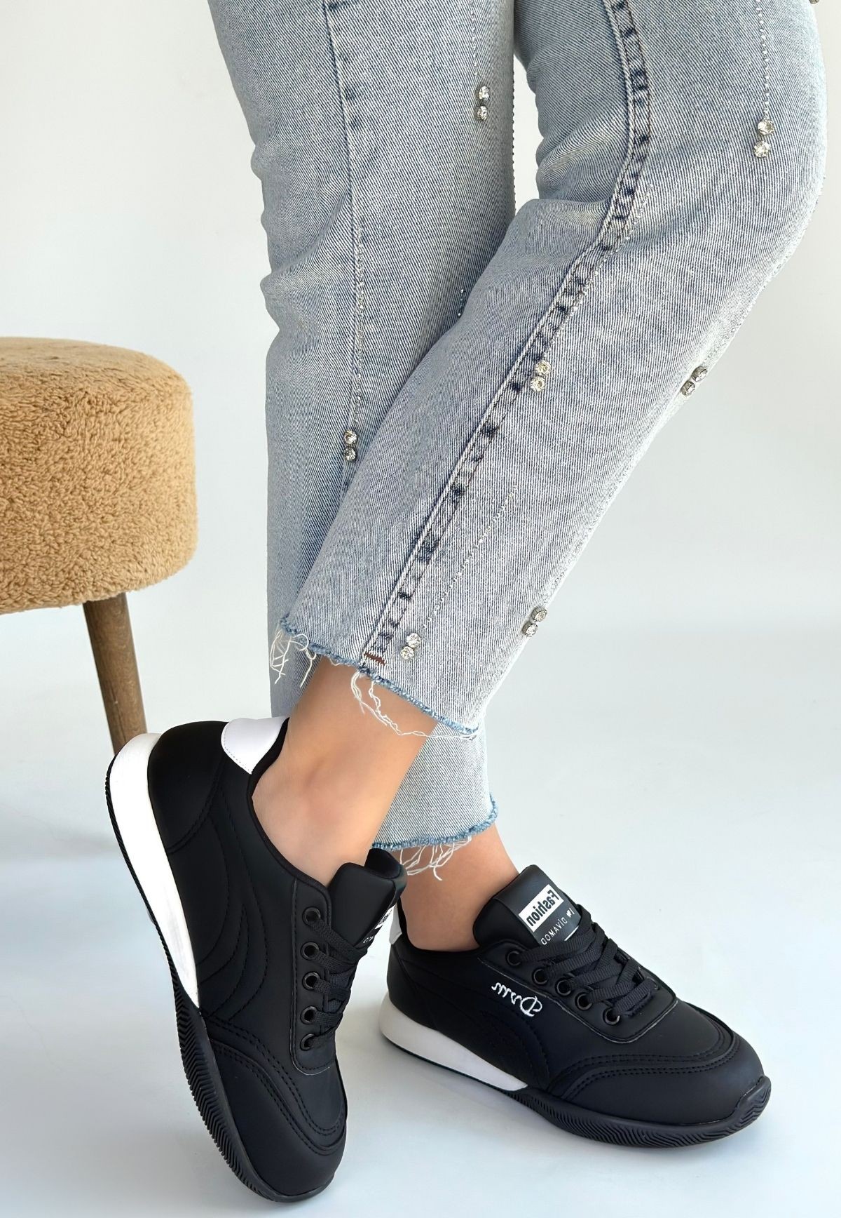 Tawen Siyah Cilt Bağcıklı Spor Ayakkabı