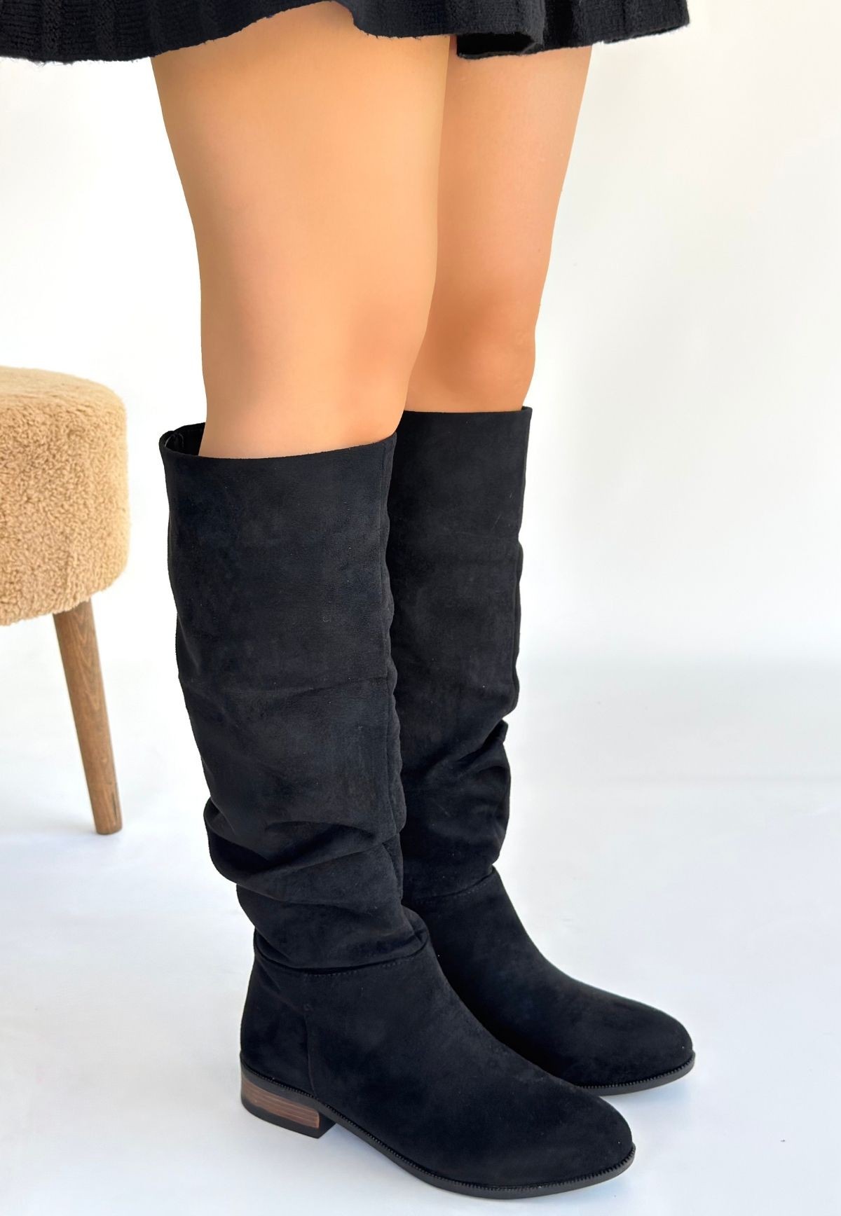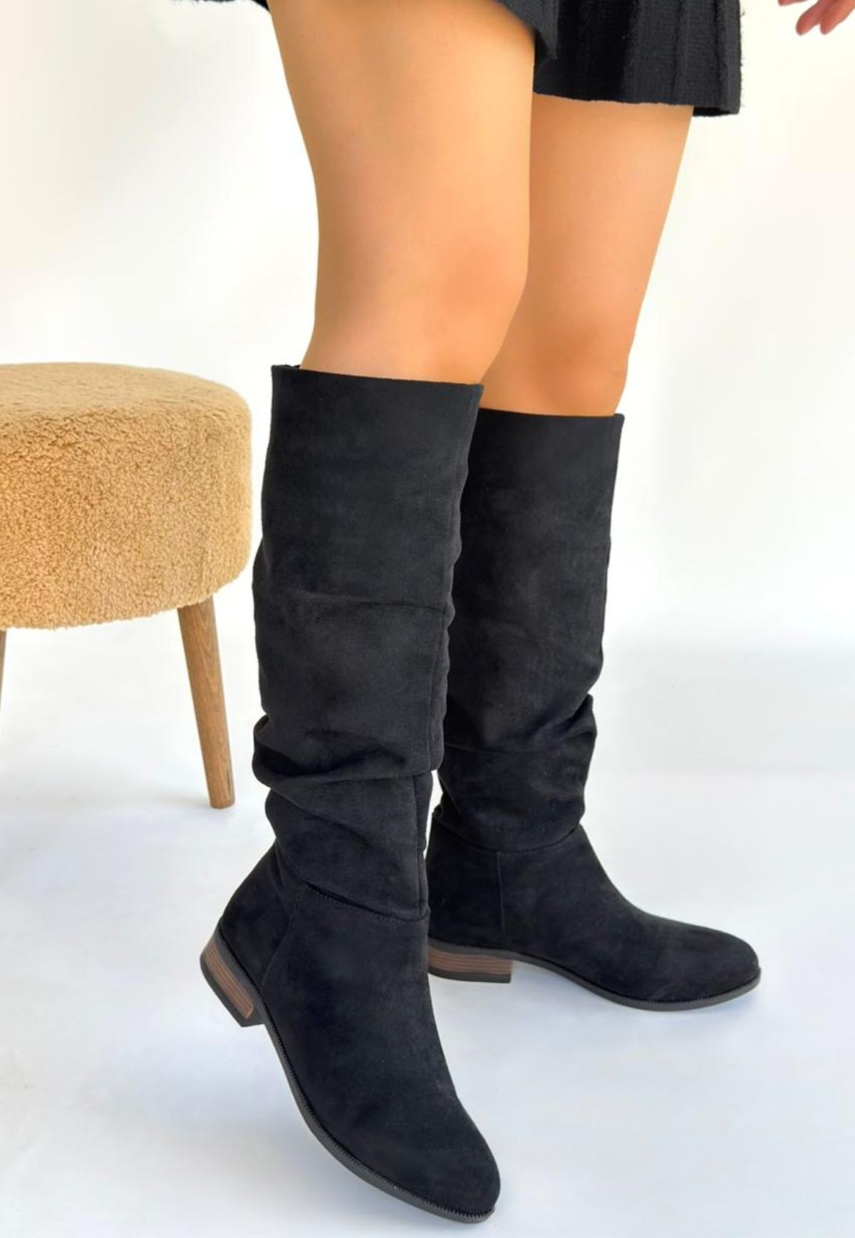 Winda Siyah Süet Körüklü Çizme